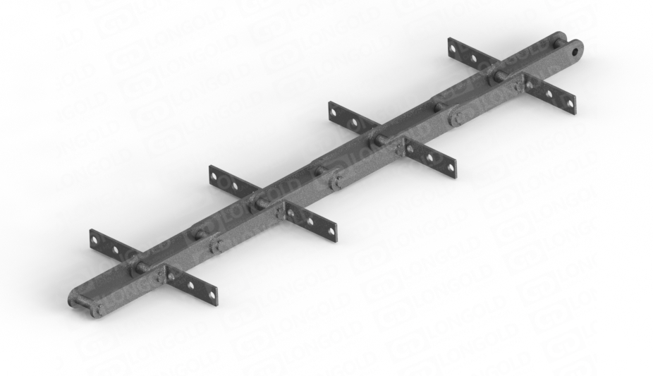 刮板輸送鏈通常由一系列剛性的刮板和鏈條組成,刮板固定在鏈條上,用于在料槽內(nèi)移動(dòng)物料。這種輸送鏈廣泛應(yīng)用于礦業(yè)、建筑、食品加工和制造業(yè)等領(lǐng)域。